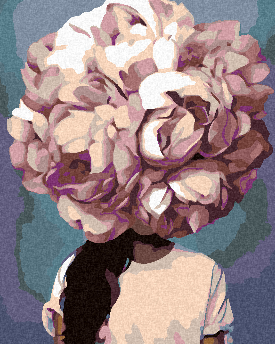 Malování podle čísel - ŽENA S HLAVOU V KVĚTINĚ - RŮŽOVÁ - 80x100 cm, bez rámu a bez vypnutí plátna