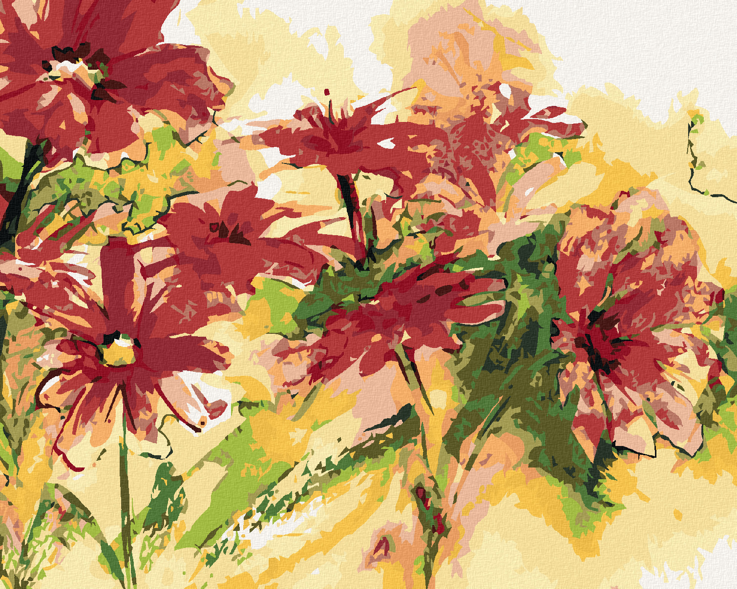 Malování podle čísel - ČERVENÉ KVETOUCÍ KVĚTINY - 40x50 cm, vypnuté plátno na rám