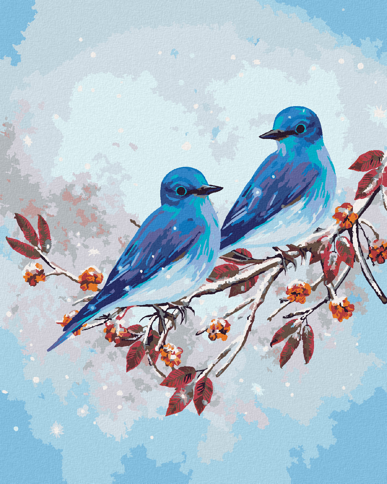 Malování podle čísel - DVA MODŘÍ PTÁČCI NA VĚTVI - 40x50 cm, bez rámu a bez vypnutí plátna