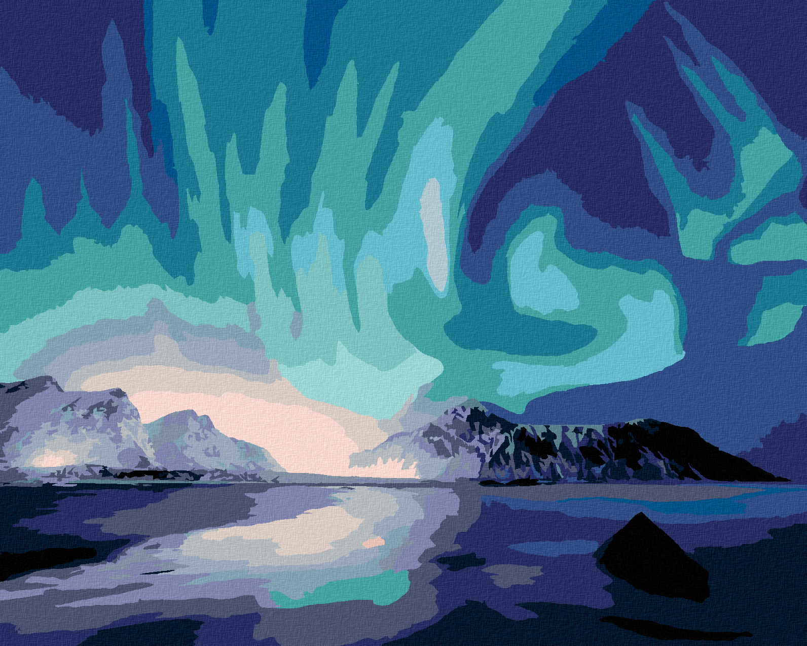 Malování podle čísel - POLÁRNÍ ZÁŘE NAD MOŘEM - 40x50 cm, bez rámu a bez vypnutí plátna