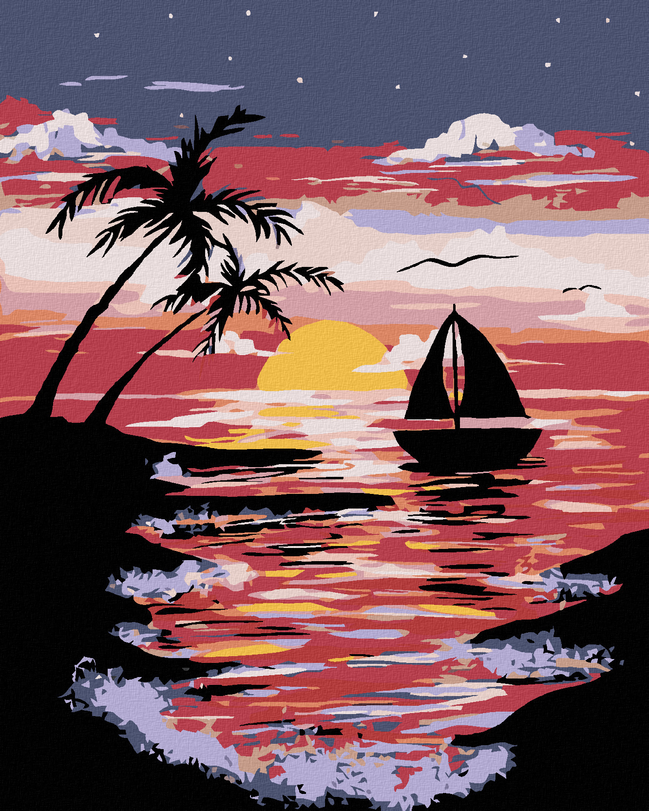 Malování podle číse je malířská technika, při které vyplňujete očíslované plošky na plátně odpovídající akrylovou barvou. Jistě, že to není žádné velké umění, ale výsledek Vás ohromí. S trochou péče a soustředění dokážete namalovat opravdový obraz akrylem na plátno. V každé naší sadě najdete kvalitní plátno s předtištěným vzorem, sadu štětců pro pohodlné malování větších i menších plošek, akrylové barvy v kelímcích, návod k malování a malý obrázek, který ukazuje, jak bude obraz po vymalování vypadat.