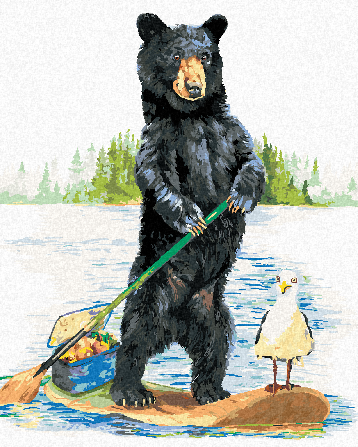Malování podle čísel - MEDVĚD NA LOĎCE (HOLLY SIMENTAL) - 40x50 cm, bez rámu a bez vypnutí plátna