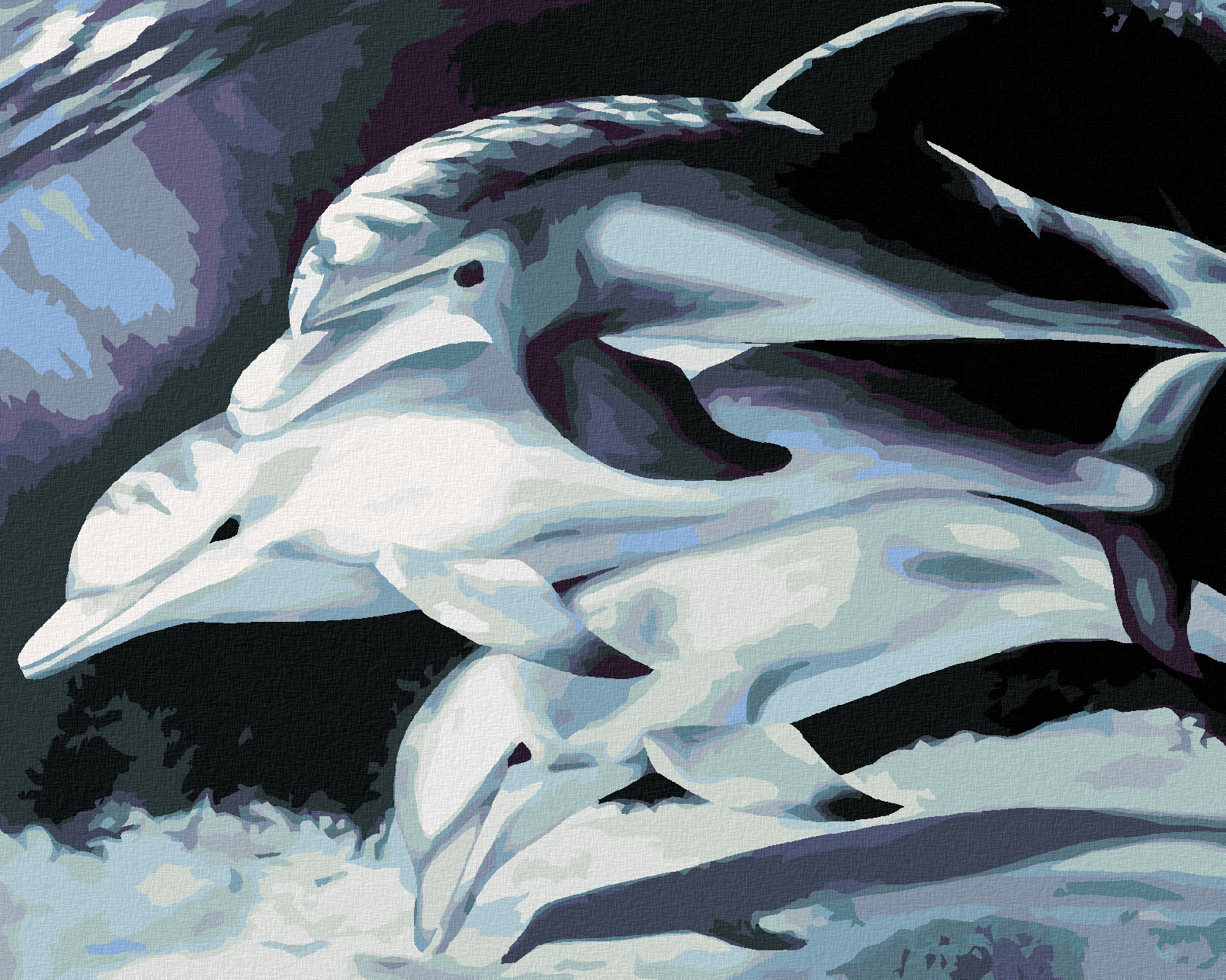 Malování podle čísel - TŘI DELFÍNI - 40x50 cm, bez rámu a bez vypnutí plátna