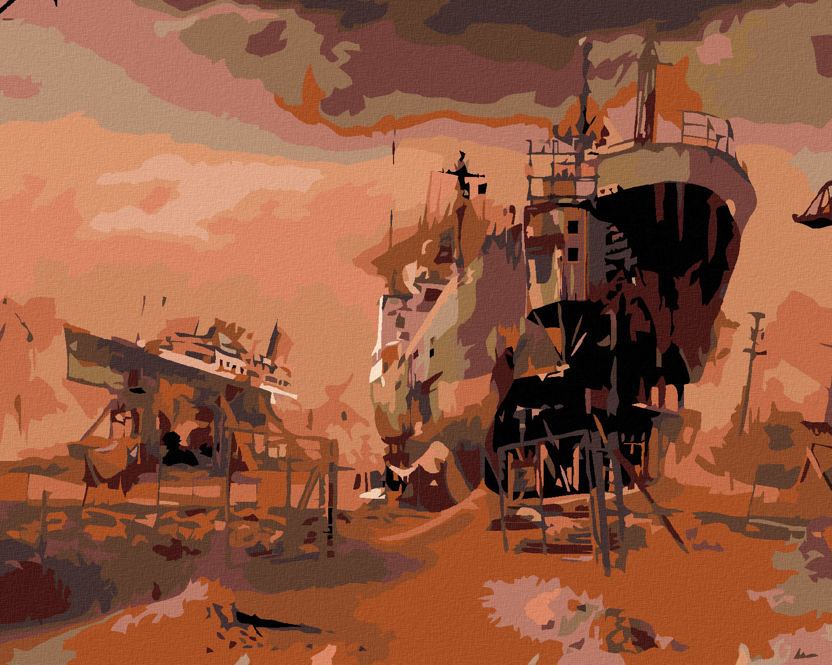 Malování podle čísel - ROZESTAVĚNÉ LODĚ - 40x50 cm, bez rámu a bez vypnutí plátna