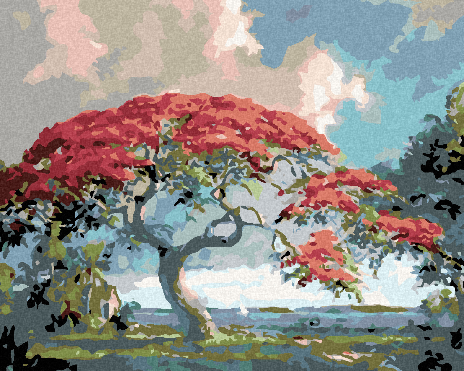Malování podle čísel - RUDÁ BONSAI - 40x50 cm, vypnuté plátno na rám