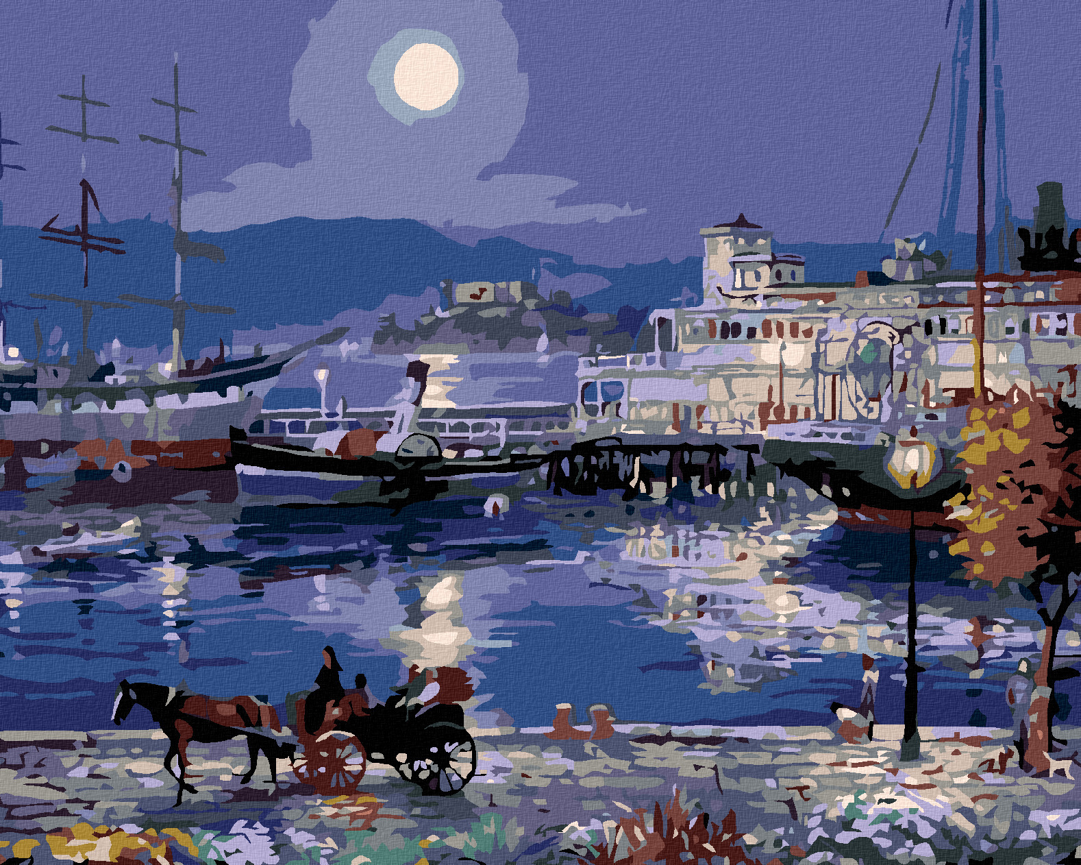 Malování podle čísel - NOČNÍ PŘÍSTAVIŠTĚ - 40x50 cm, bez rámu a bez vypnutí plátna