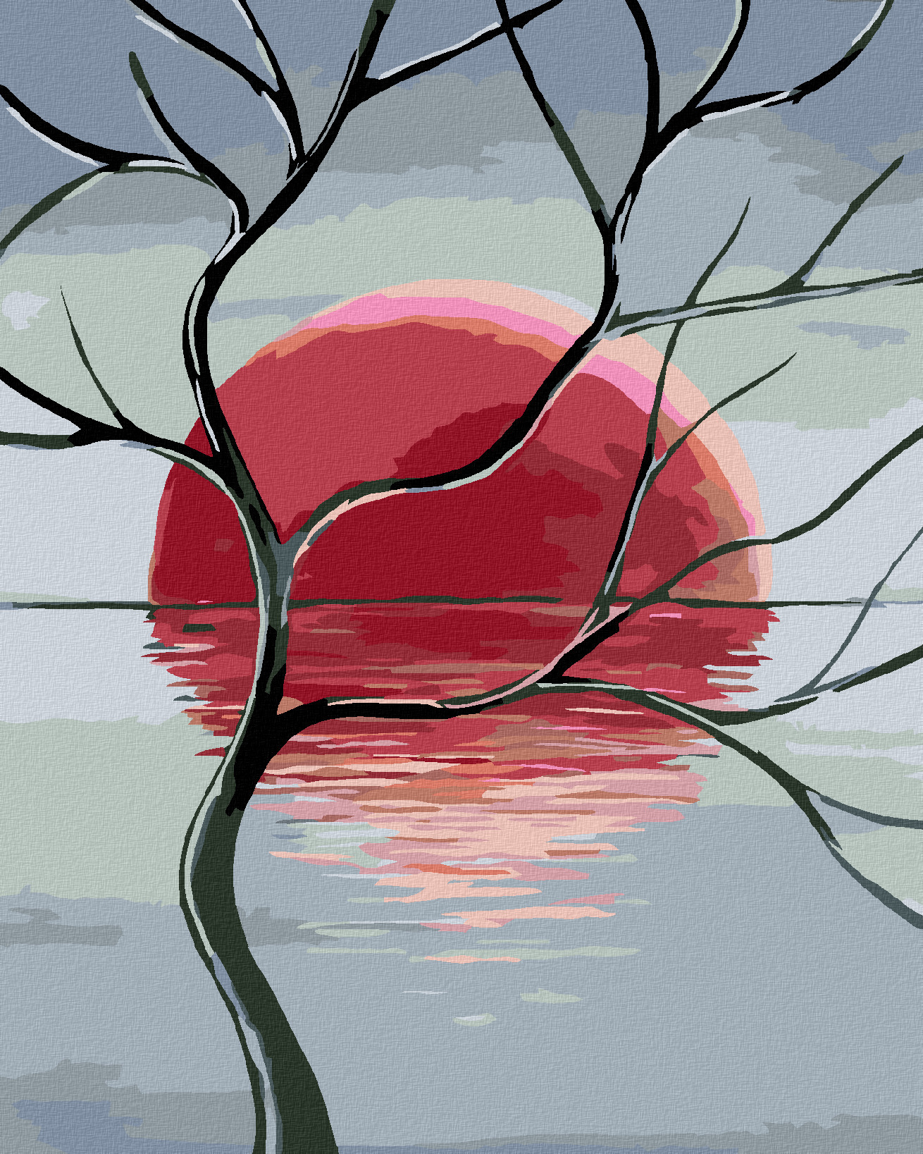 Malování podle čísel - STARÝ STROM A ZÁPAD SLUNCE - 80x100 cm, bez rámu a bez vypnutí plátna