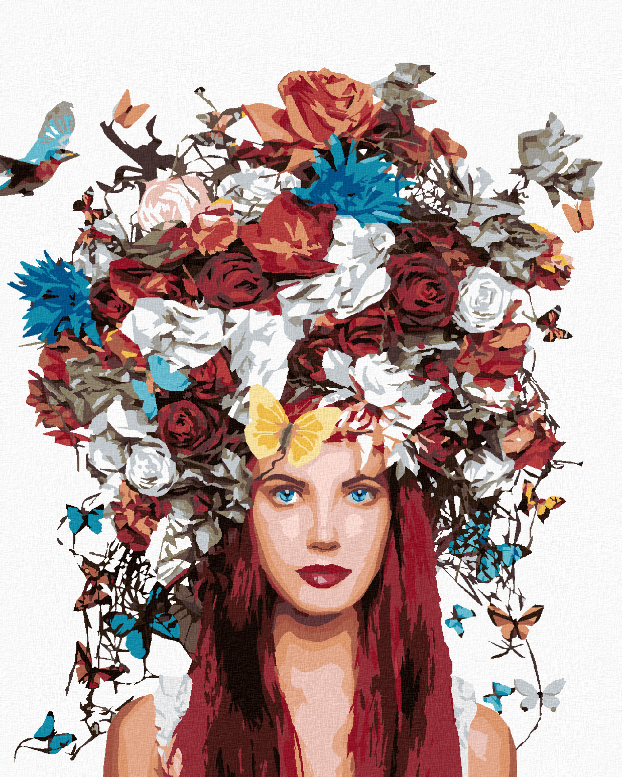 Malování podle čísel - ŽENA S KVĚTINOVOU KORUNOU - 40x50 cm, bez rámu a bez vypnutí plátna