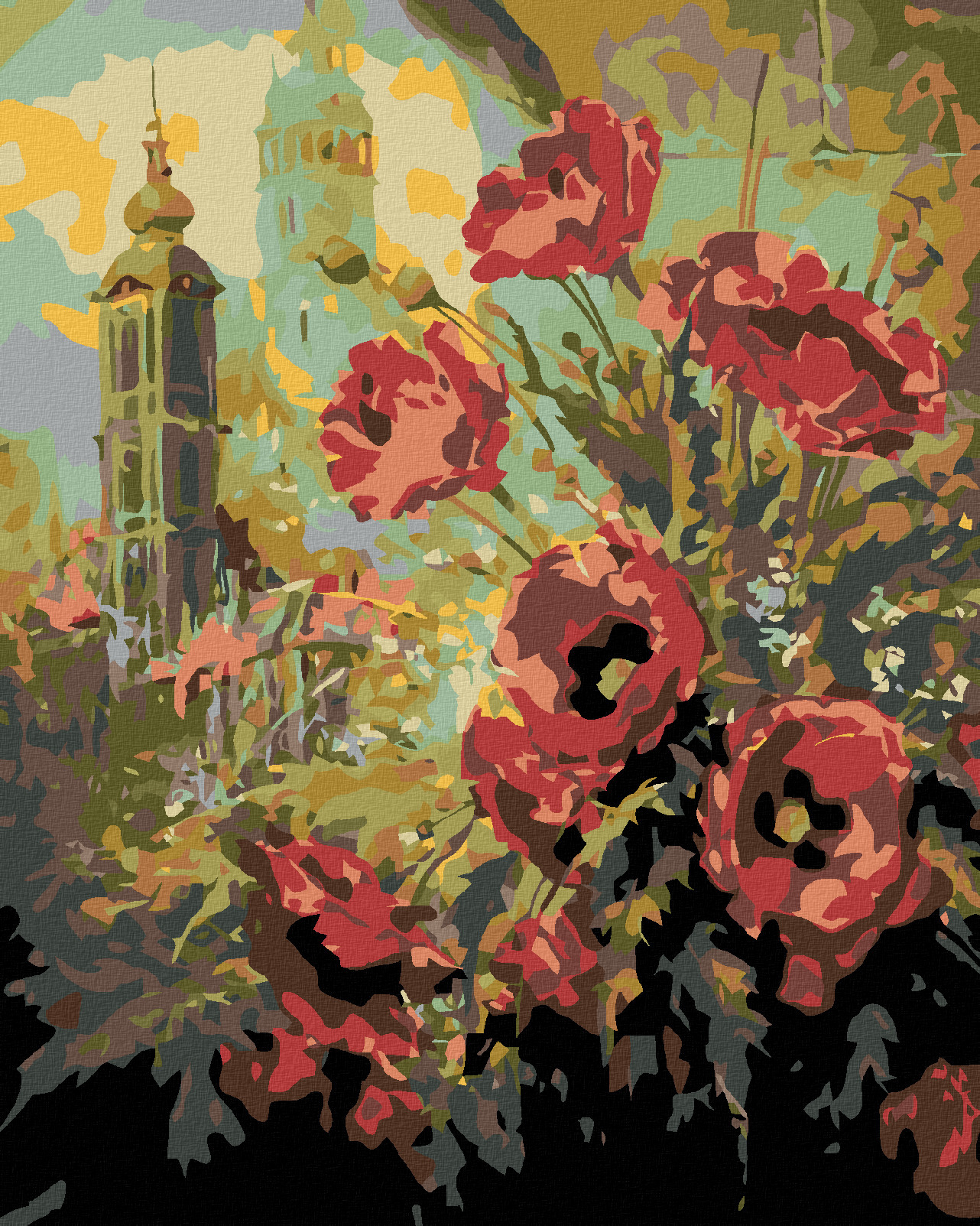 Malování podle čísel - VLČÍ MÁKY U OKNA - 40x50 cm, bez rámu a bez vypnutí plátna