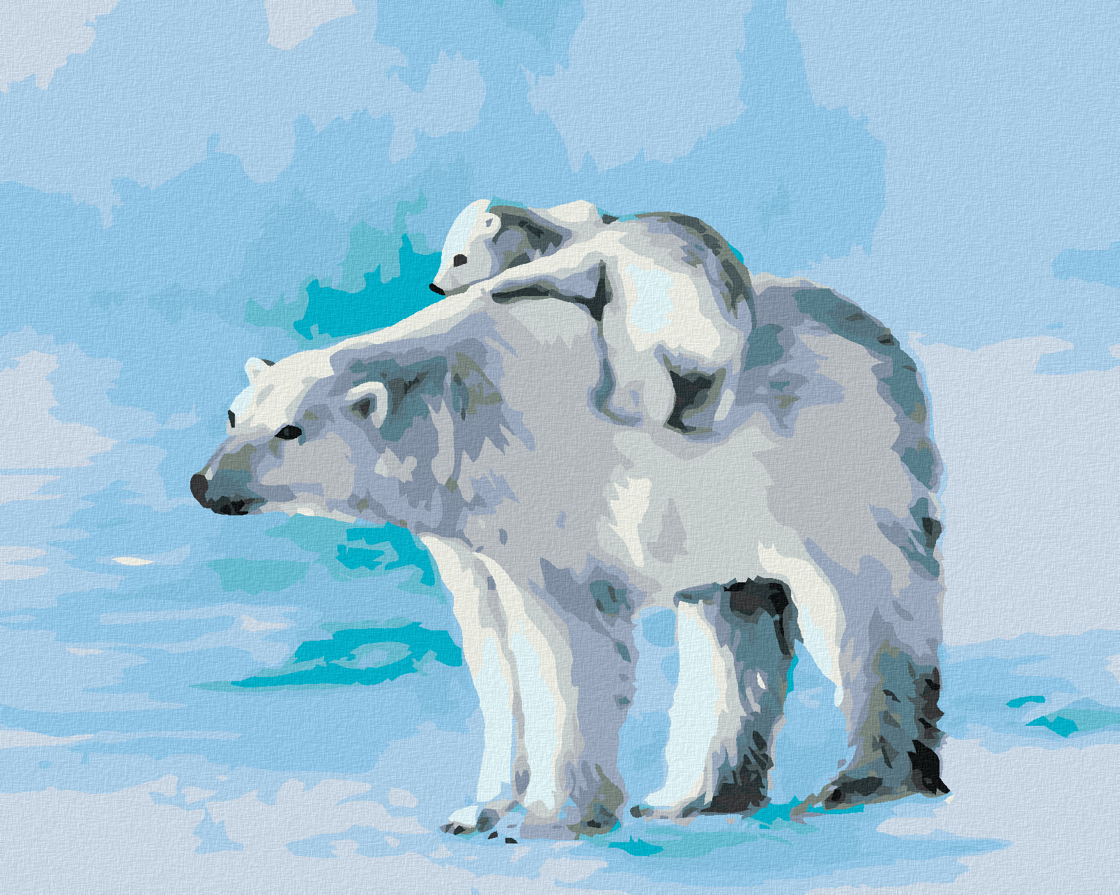 Malování podle čísel - POLÁRNÍ MEDVĚD A MEDVÍDĚ - 40x50 cm, bez rámu a bez vypnutí plátna