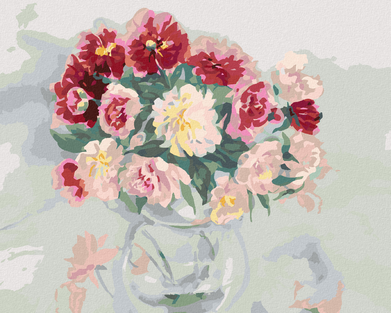 Malování podle čísel - BAREVNÉ PIVOŇKY VE VÁZE - 40x50 cm, vypnuté plátno na rám