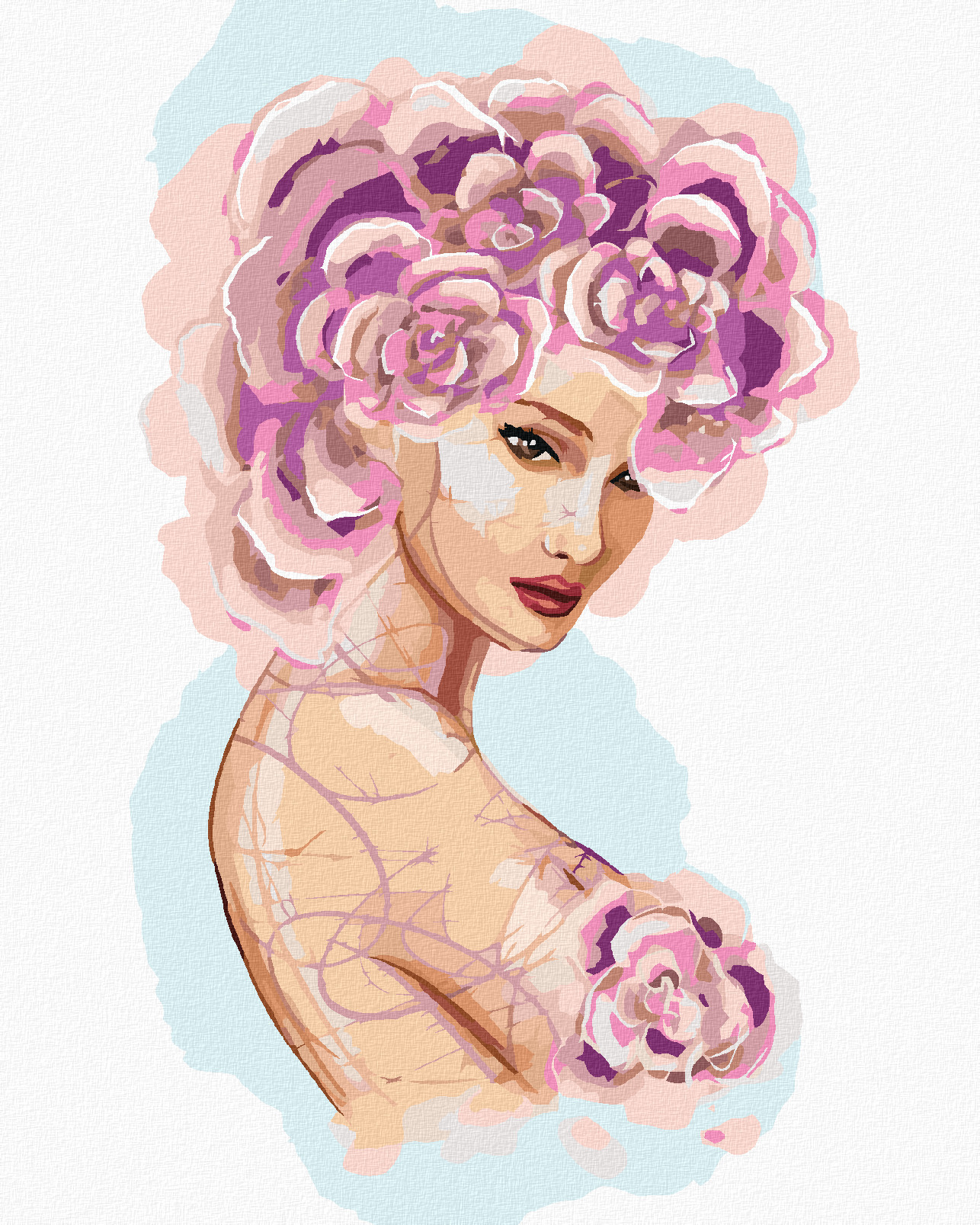 Malování podle čísel - ŽENA S RŮŽOVÝMI KVĚTINAMI - 80x100 cm, vypnuté plátno na rám