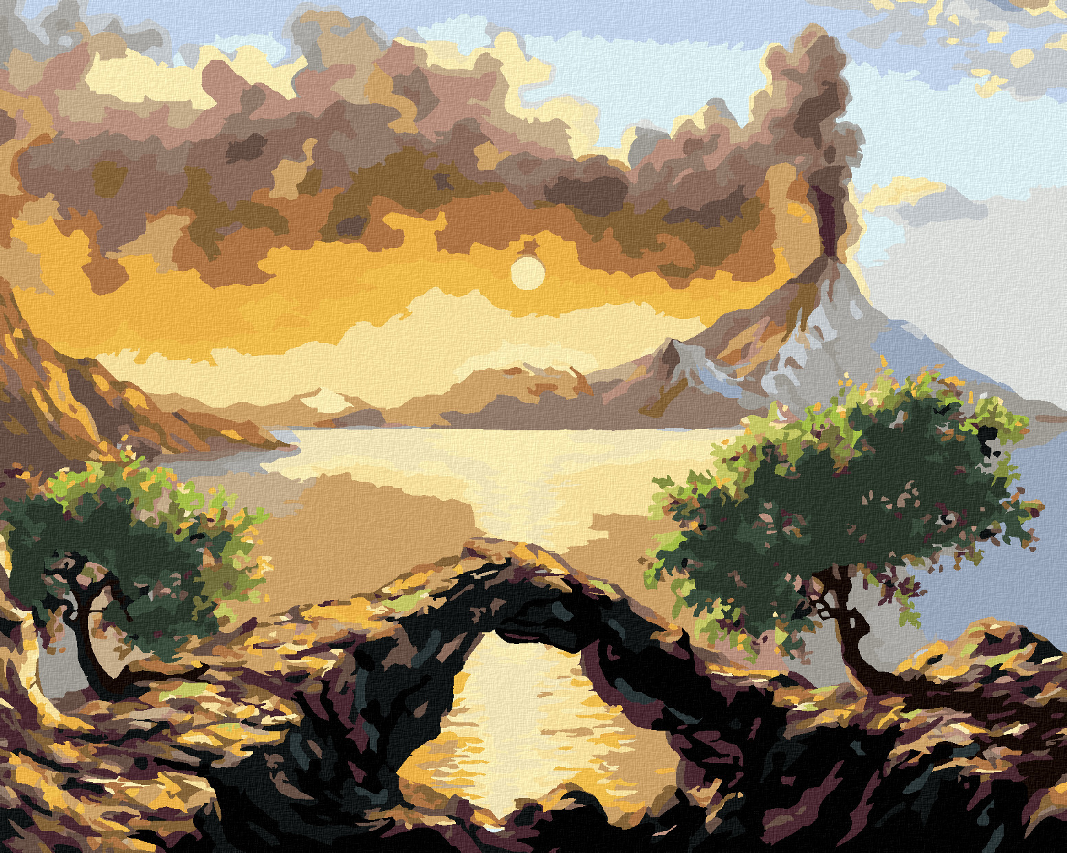 Malování podle čísel - KRAJINA S VÝBUCHEM SOPKY - 80x100 cm, vypnuté plátno na rám