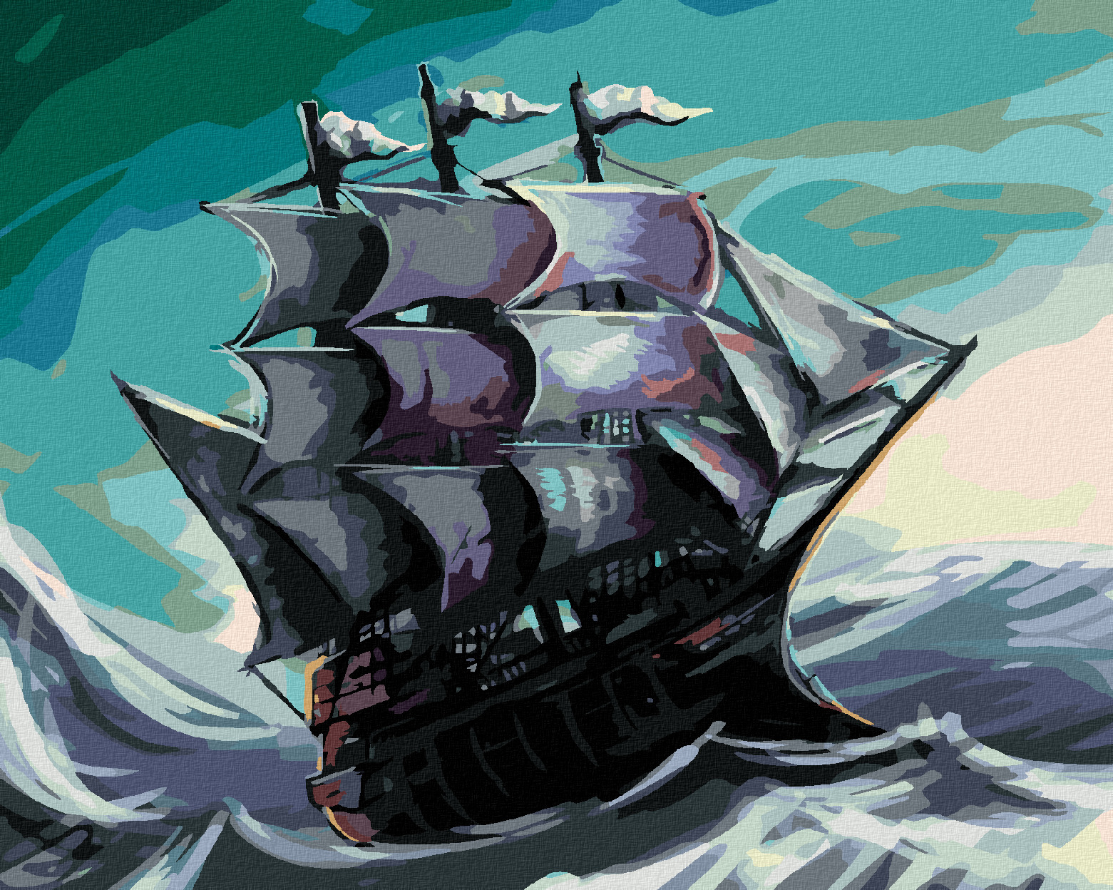 Malování podle čísel - PIRÁTSKÁ LOĎ NA MOŘI - 40x50 cm, bez rámu a bez vypnutí plátna