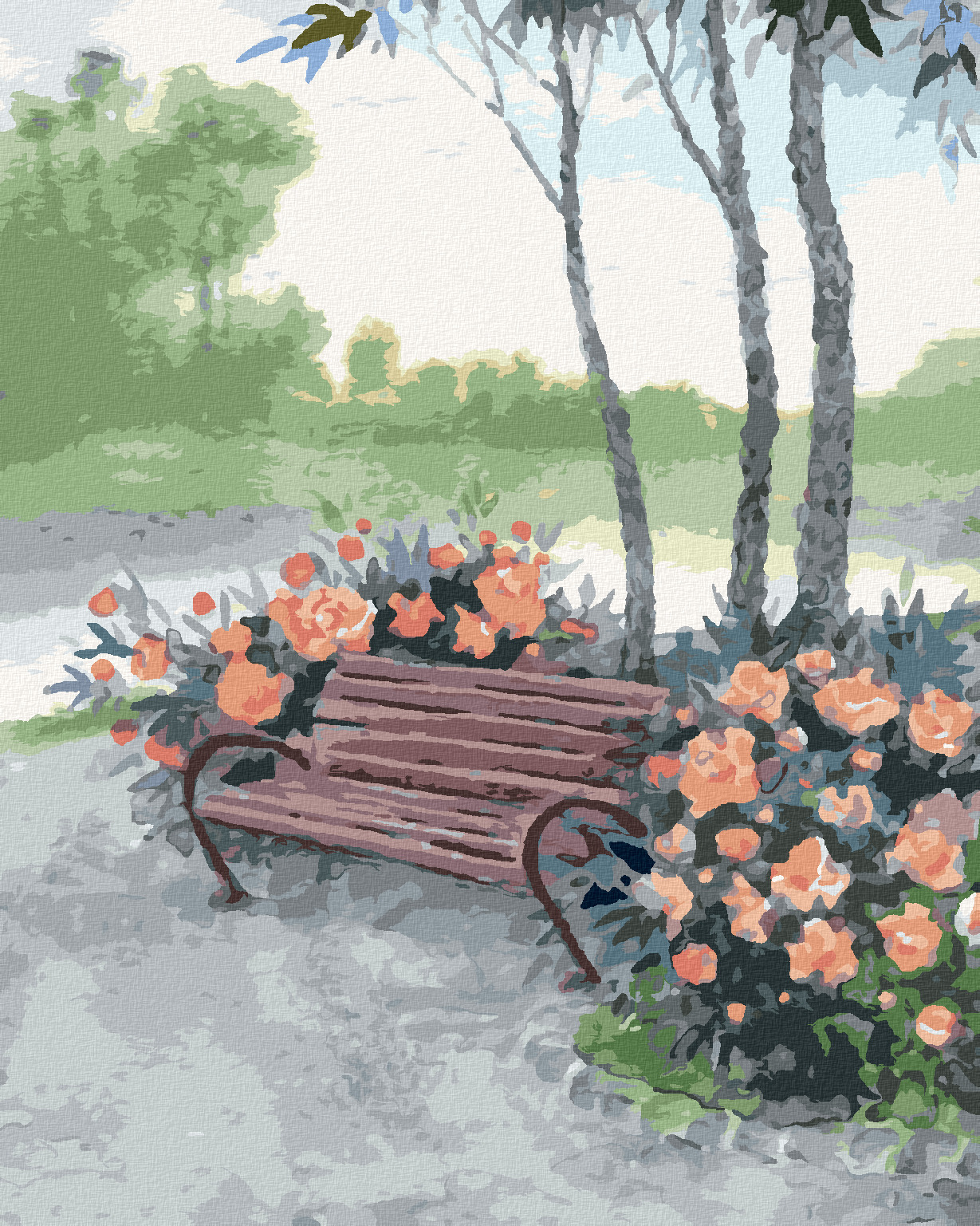 Malování podle čísel - LAVIČKA V LESE U ŘEKY - 40x50 cm, bez rámu a bez vypnutí plátna