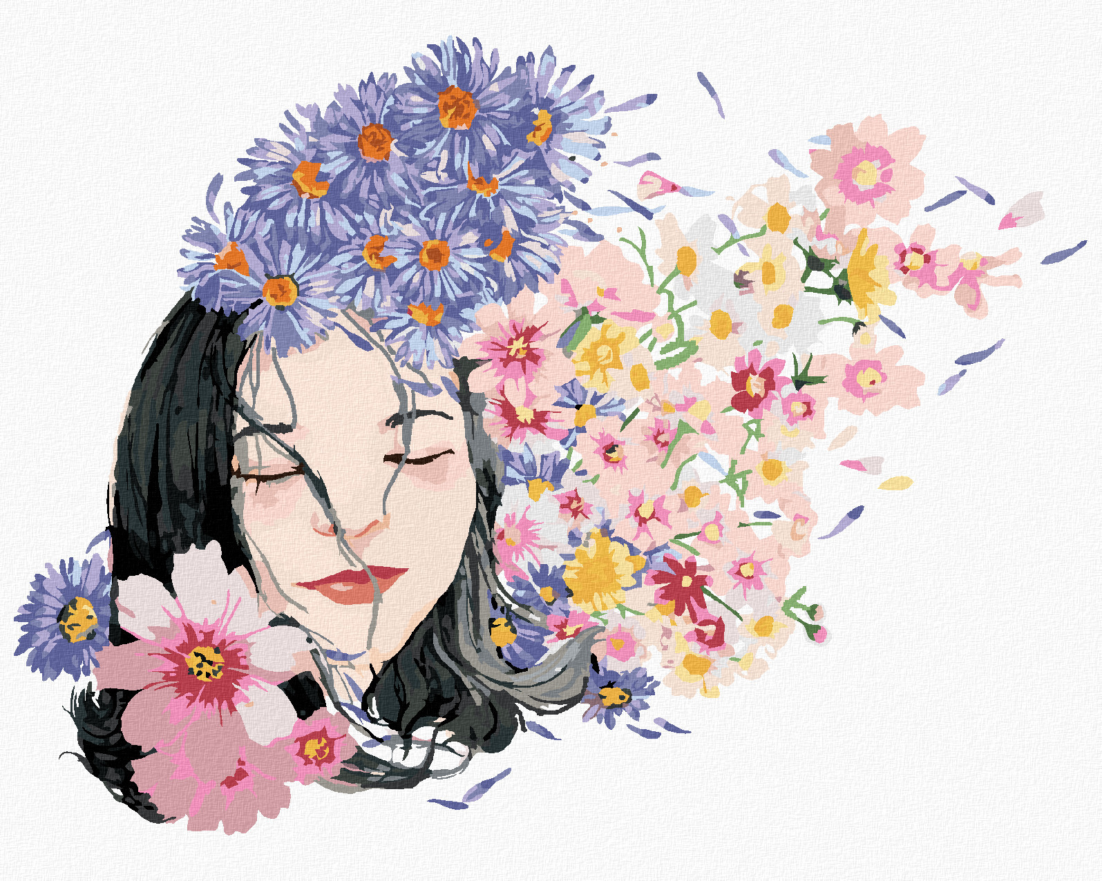 Malování podle čísel - ZASNĚNÁ ŽENA A KVĚTINY - 80x100 cm, bez rámu a bez vypnutí plátna