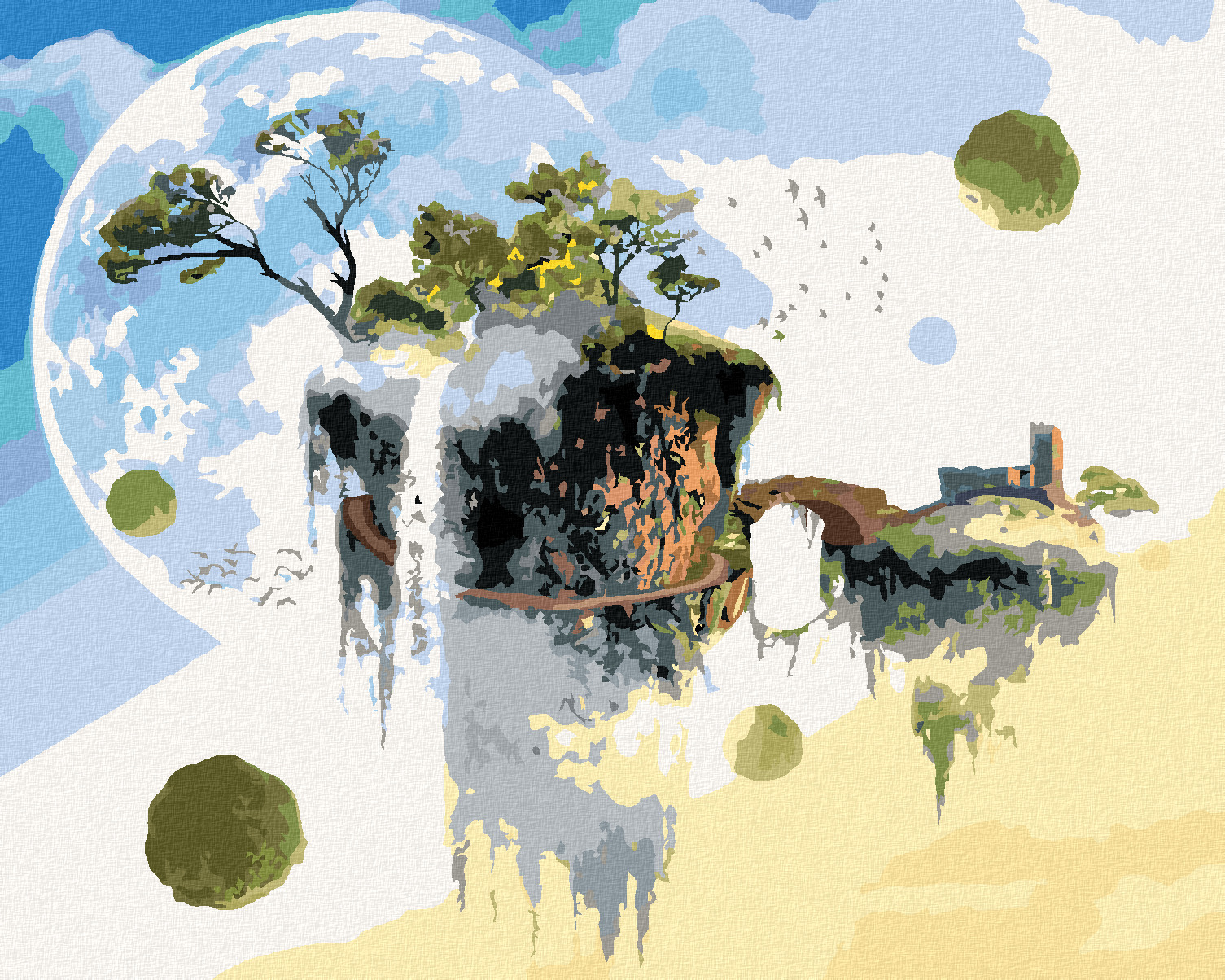 Malování podle čísel - LÉTAJÍCÍ OSTROV - 40x50 cm, vypnuté plátno na rám
