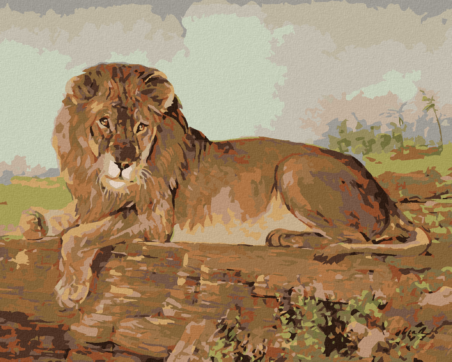 Malování podle čísel - LEV NA SAVANĚ - 80x100 cm, vypnuté plátno na rám