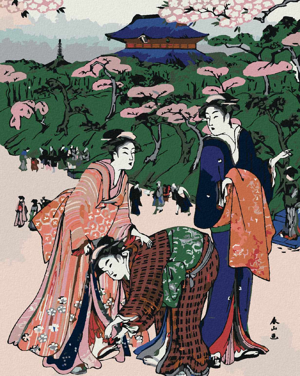 Malování podle čísel - JAPONSKO A ROZKVETLÉ SAKURY - 80x100 cm, vypnuté plátno na rám
