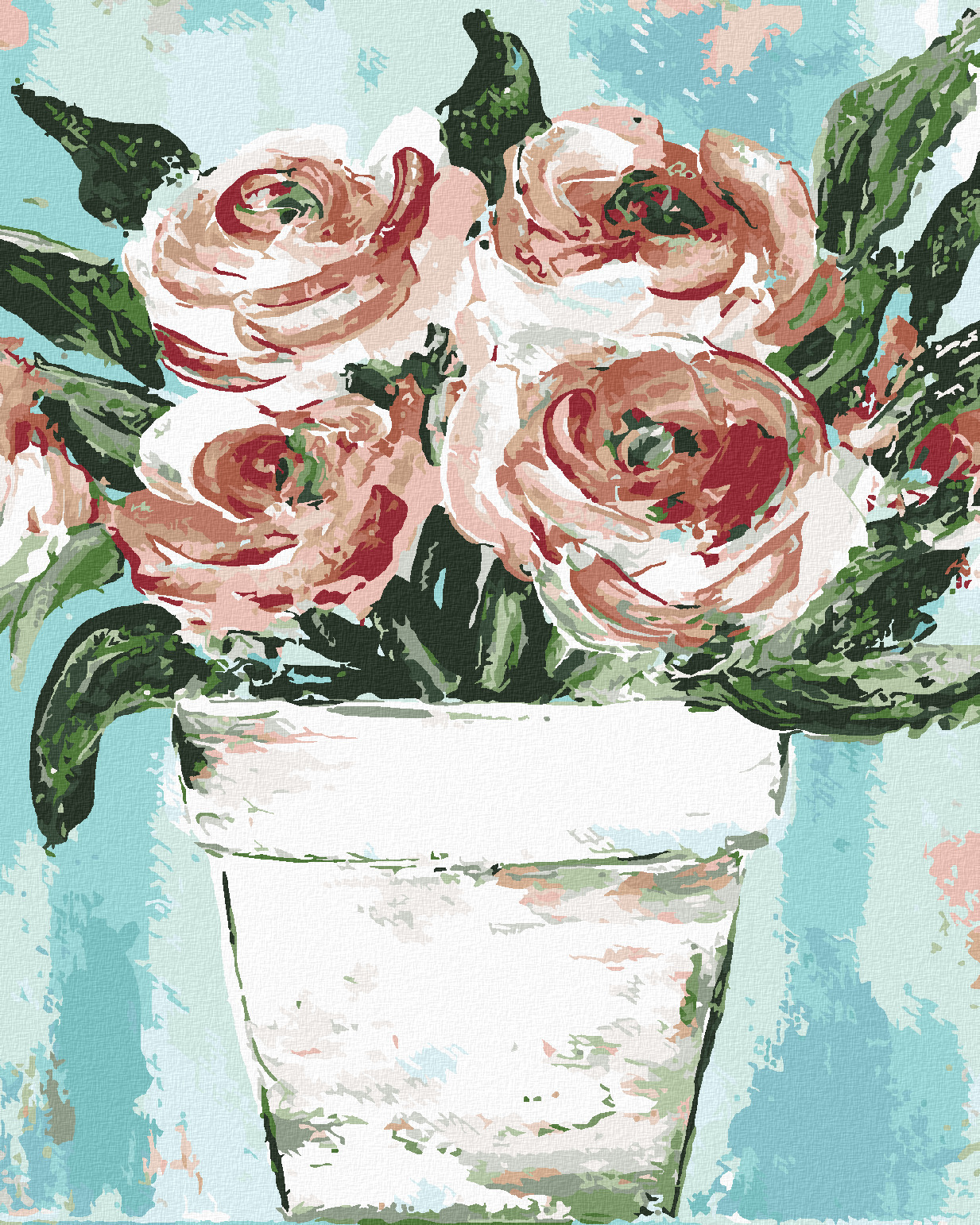 Malování podle čísel - RŮŽOVE RŮŽE V KVĚTINÁČI (HALEY BUSH) - 40x50 cm, vypnuté plátno na rám