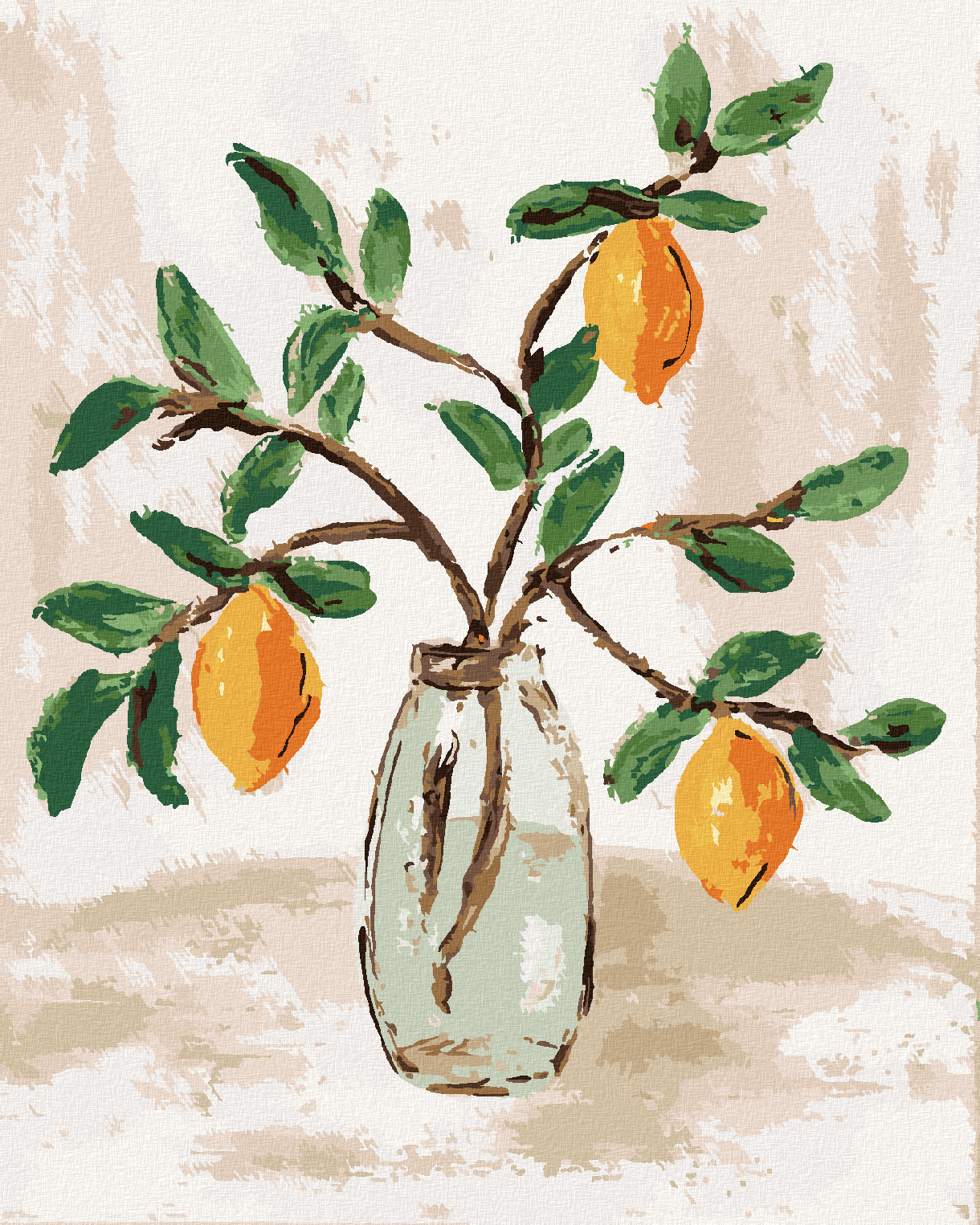 Malování podle čísel - CITRÓNY VE VÁZE 4 (HALEY BUSH) - 80x100 cm, vypnuté plátno na rám