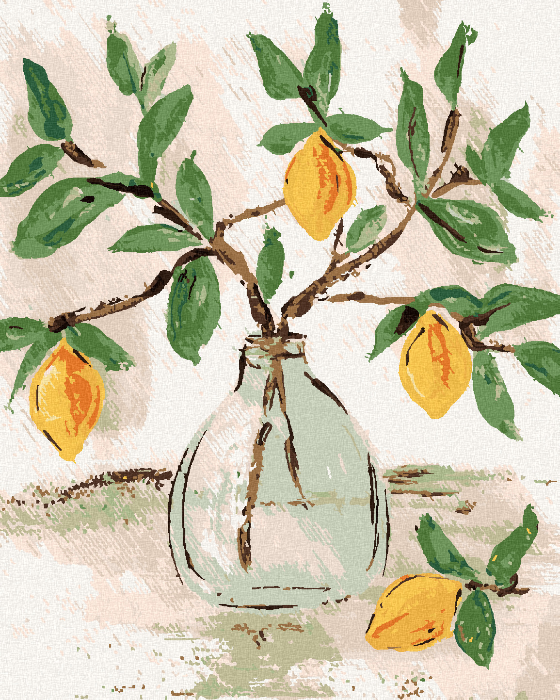 Malování podle čísel - CITRÓNY VE VÁZE (HALEY BUSH) - 80x100 cm, vypnuté plátno na rám