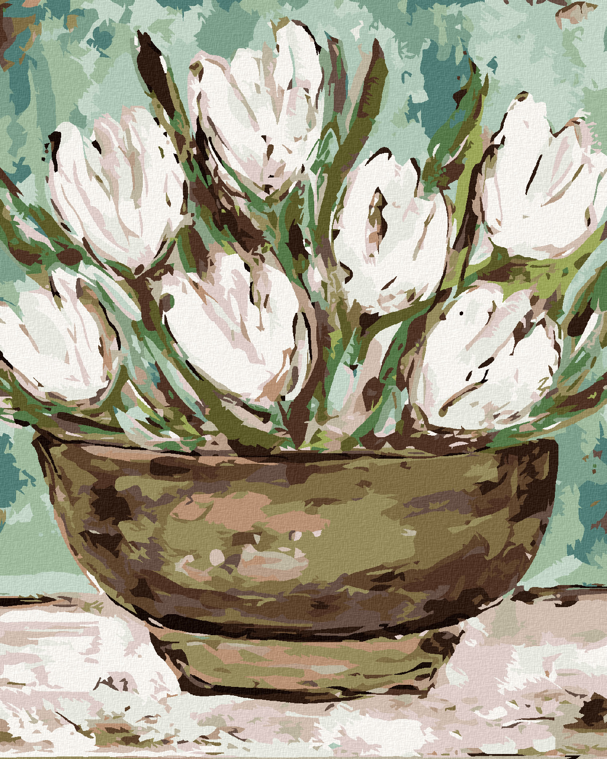 Malování podle čísel - MISKA S TULIPÁNY (HALEY BUSH) - 80x100 cm, vypnuté plátno na rám