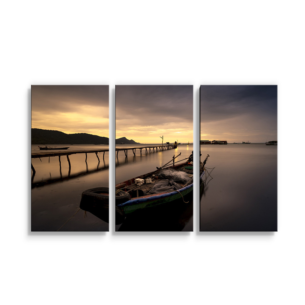 Obraz - 3-dílný Loďka na jezeře 2: 120x80 cm