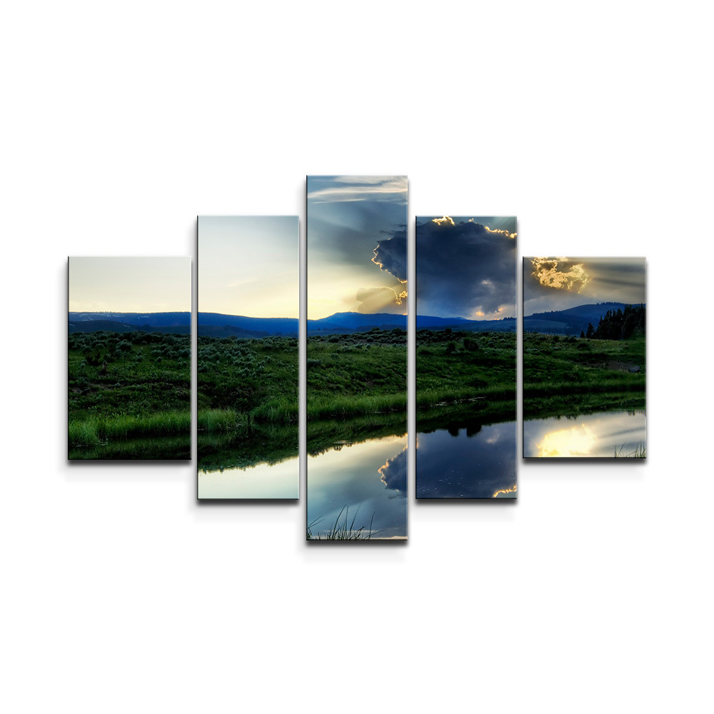 Obraz - 5-dílný Mrak nad řekou: 125x90 cm