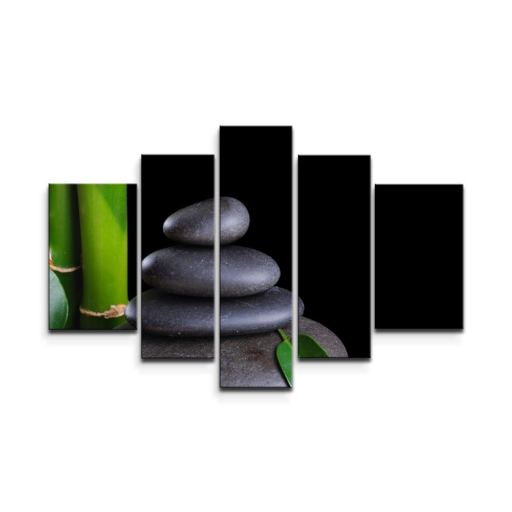 Obraz - 5-dílný Bambus a kameny: 125x90 cm