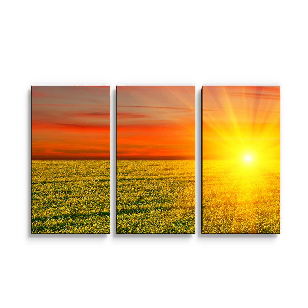 Obraz - 3-dílný Západ slunce nad loukou: 120x80 cm