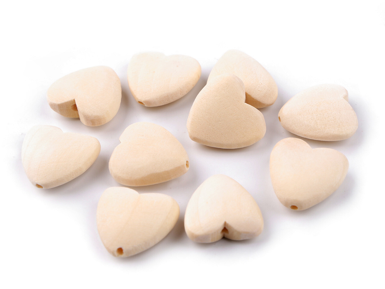 Dřevěné korálky nelakované srdce Ø20 mm - 10 ks - přírodní sv.