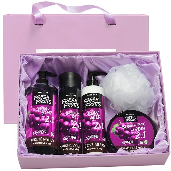 Dárková sada kosmetiky s hroznovým vínem je osvěžující kosmetická řada s výtažky z hroznového vína bohatá na vitamíny a antioxidanty účinně napomáhá chránit pokožku proti volným radikálům a zabraňuje jejímu předčasnému stárnutí.