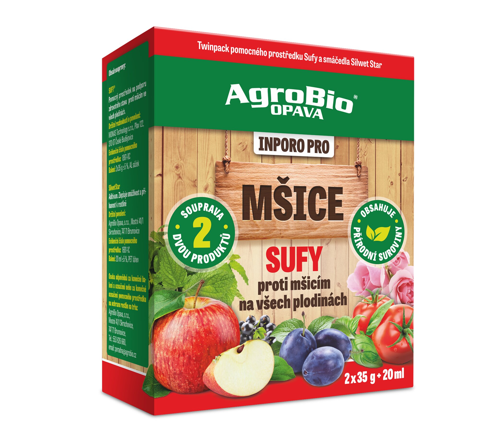 Tato sada obsahuje přípravek Sufy, založený na hydroskopickém jílu, který absorbuje vodu z mšic a způsobuje jejich uschnutí, a zároveň smáčedlo Silwet Star, které zajišťuje perfektní přilnavost a účinek postřiku. Aplikujte ji snadno postřikem v období výskytu mšic, a to na všechny druhy rostlin.
