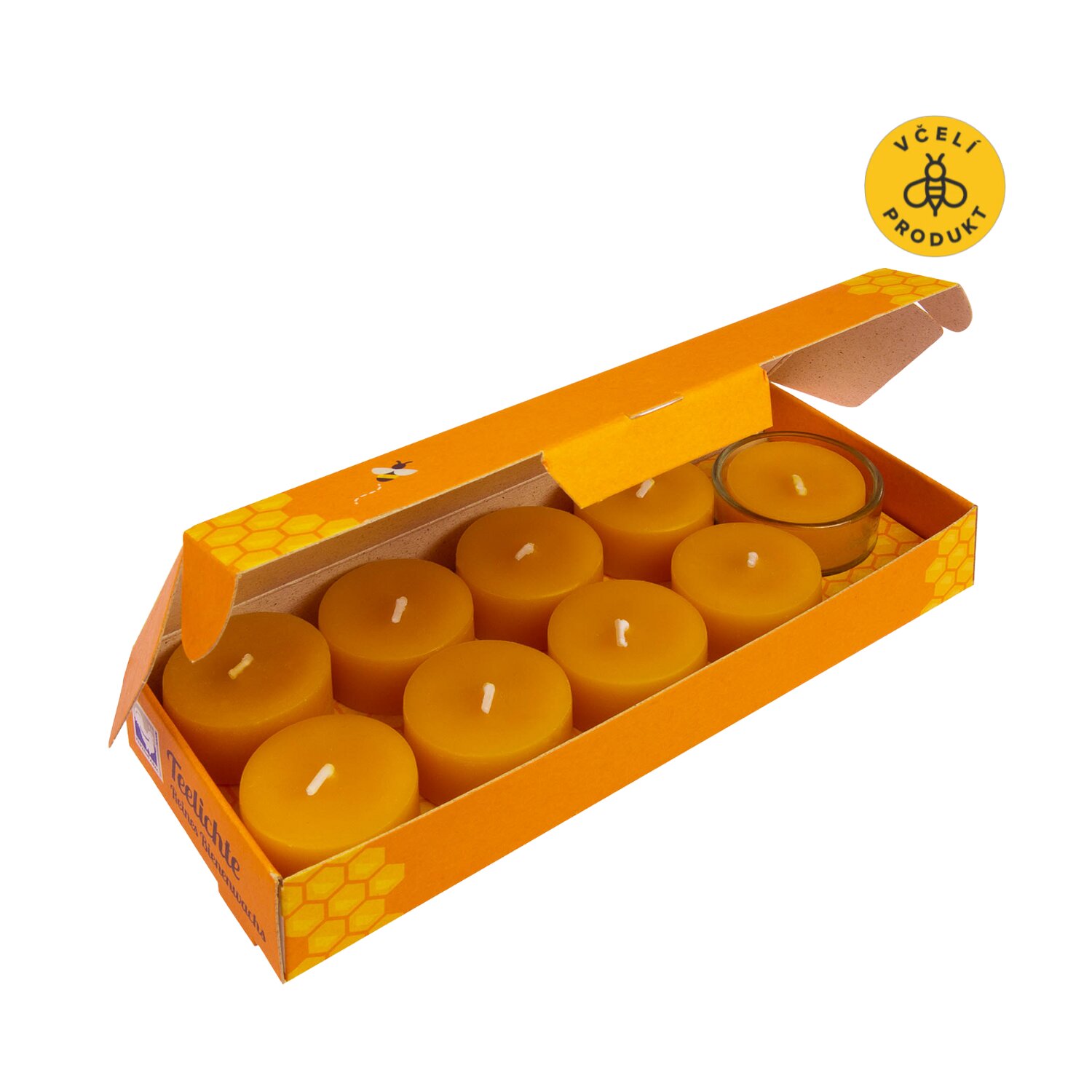 Kerzenfarm Sada čajových svíček ze včelího vosku (9 ks + stojánek) - bezobalové - ruční výroba