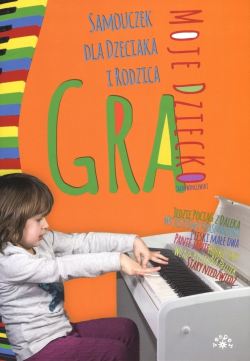 Z tą książką twoje dziecko nauczy się grać na pianinie, keyboardzie lub organach piosenki: Jedzie pociąg z daleka, My jesteśmy krasnoludki, Pieski małe dwa, Panie Janie, Wlazł kotek na płotek, Kurki trzy, Stary niedźwiedź.