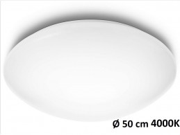 Velké stropní/ nástěnné LED svítidlo Suede o průměru 50 cm z kolekce moderního interiérového osvětlení Philips myLiving má klasický jednoduchý tvar a decentní styl pro rozsvícení větších místností kdekoli v domě, kanceláři nebo komerčních prostorách. Silné rozptýlené energicky chladné bílé světlo s teplotou chromatičnosti 4000K simulující denní svit zajišťují integrované úsporné vysoce výkonné LED diody s okamžitým startem o maximálním příkonu 4 x 10 W, které odpovídají čtyřem 55 W žárovkám. Zdroje jsou součástí svítidla a není možné je měnit. Svítidlo je tak naprosto bezúdržbové. Philips navíc poskytuje prodlouženou záruku 5 let. Pro jeho výrobu byl použit kvalitní odolný plast v čistě bílé barvě. Instalace je možná na strop nebo na stěnu. Stupeň krytí má hodnotu IP20 vhodnou pro použití v interiéru. Kvalitní materiály v kombinaci s vestavěnými moderními technologiemi zaručují vysokou užitnou hodnotu, dlouhou životnost až 20 let při značné úspoře elektrické energie. Philips myLiving Philips nabízí osvětlení pro všechny prostory. V kolekci myLiving představuje interiérová svítidla v moderním designu využívající moderních technologií, které šetří elektrickou energii při zachování funčknosti. Možnosti jejich uplatnění jsou prakticky neomezené. V nabídce jsou všechny druhy svítidel: stropní a nástěnná přisazená, bodová, závěsná, lampy a lampičky a dekorativní osvětlení. Z velkého výběru této produktové řady vyberete svítidla pro každý interiér, která budou skvělým doplňkem obývacího pokoje, ložnice, pracovny či chodby. Krytí IP20 Interiérová svítidla jsou vyrobena pro použití v domácnosti, kanceláři nebo v jiných vnitřních prostorách. Označení krytí stupněm IP vyjadřuje dva údaje. Prvním je stupeň ochrany proti prachu a druhým proti vodě. Svítidla s krytím IP20 jsou chráněna proti vniknutí pevných cizích těles o průměru 12,5 mm a větších a před dotykem prstem. Proti vodě nejsou chráněna. Toto krytí je nejčastějším pro zařízení určených pro interiéry.