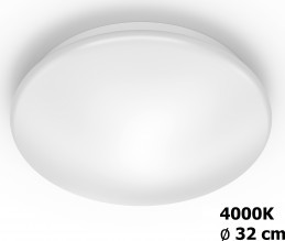 Úsporné stropní LED svítidlo Philips Moire v největší variantě s průměrem 32 cm s jasným neutrálním bílým světlem s teplotou chromatičnosti 4000K se snadno instaluje a je rozsvítí větší místonosti v domácnosti, ale i v komerčních prostorách. Krytí IP20 označuje vhodnost použití v místnostech bez zvýšené vlhkosti, není vhodné do koupelny. Pro jeho výrobu byl použit kov s vnější bílou povrchovou úpravou v kombinaci s hladkým mléčným plastem, který se snadno udržuje a rovnoměrně rozptyluje svit. Světlo, které šetří vaše oči díky technologii EyeComfort, zajišťuje integrovaný úsporný vysoce výkonný LED zdroj o maximálním příkonu 1 x 17 W se silnou svítivostí 1900 lm a životností až 15.000 hodin. Philips poskytuje prodlouženou záruku 5 let.