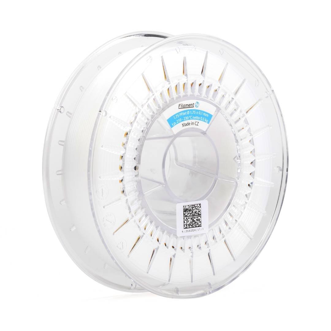 PPJet filament je technický plast s vysokou chemickou odolností vůči kyselinám, zásadám, olejům, solím i vodě. Díky nízké hustotě je extrémně lehký a dokonce může plavat na vodě. Jeho vysoká houževnatost a flexibilita zaručují odolnost proti nárazům a výbornou soudržnost vrstev během tisku. Tento filament je vhodný nejen pro výrobu prototypů a testování, ale i pro funkční díly, které musí odolávat náročným podmínkám. Navíc je zdravotně nezávadný a odolný při teplotách až do 100 °C.