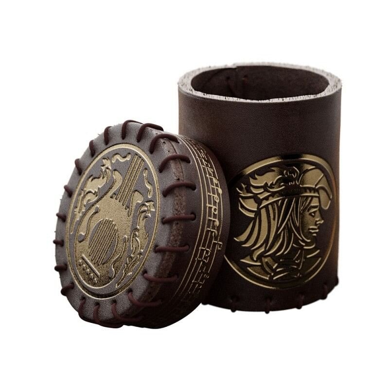 Kelímek na kostky z hnědé kůže se zlatou podobiznou barda Marigolda, který na svém vznešeném oři jménem Pegas jezdil po boku přítele zaklínače Geralta z Rivie. Šikovný společník pro hráče a milovníky her na hrdiny a deskových či kostkových her. Materiál: kůže