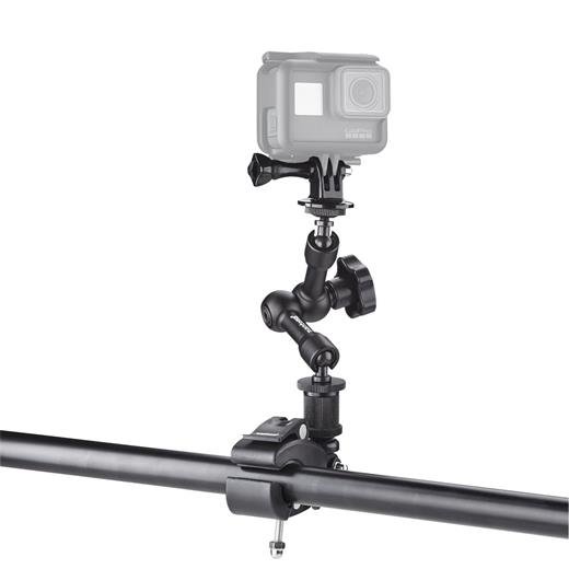 Ohebné rameno dlouhé 18 cm je vybavené třemi klouby, z toho dva z nich jsou kulové, pro snadnější nastavení správného úhlu. Klouby zablokujete centrálním zamykacím kolečkem a upravíte si pohled natáčení dle svých představ. Ať už vlastníte GoPro kameru, chytrý telefon, světelné kamery do 500 g nebo vybavení jako LED světla, mikrofony a mnoho dalšího, držák Mantona Magic Arm vám přijde vhod. Získejte videa z originálních pozic a úhlů pohledu, kterými oživíte jejich scénu.