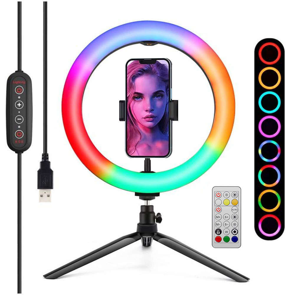 RGB LED kruhové světlo na stativ Držák na telefon kruhový stojan na lampu Osvětlení na stativ pro selfie snímky