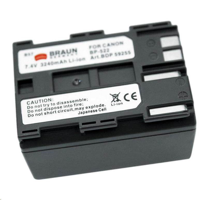 Li-Ion akumulátor Braun BDP-CBP522 (X, CANON BP-522 - 7,4 V/3240 mAh)