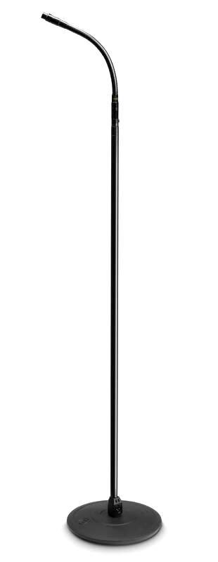 Kvalitní mikrofonní stojan - rovný ukončený XLR konektory a s odnímatelným 36,5cm dlouhým husím krkem. Je speciálně navržen pro mikrofony s husím krkem zakončené XLR konektorem nebo po doplnění přibaleného husího krku (také ukončeného XLR konektorem) můžete přímo napojit ruční mikrofon. Minimální výška bez husího krku 108cm, maximální výška s husím krkem 175cm. Litinová kruhová základna s průměrem 27cm. Stojan má univerzální použití například v kostelích, chrámech, ale i při živých vystoupeních apod.