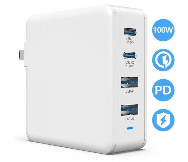 Rychlonabíjecí, síťová USB stanice až pro 4 USB zařízení (2x USB-C, 2x USB-A) o celkovém výkonu 100W s podporou technologií QC4+ a PD3.0. Elektronika obsahuje inteligentní čip pro identifikaci zařízení a optimalizaci nabíjecího proudu a napětí.