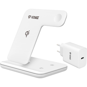 Bezdrátová nabíjecí stanice pro Apple zařízení dokáže nabít tři zařízení současně (iPhone, Apple Watch, Airpods). Stačí položit telefon na podložku a bezdrátové nabíjení se automaticky spustí. Telefon lze nabíjet v horizontální a vertikální poloze. Apple Watch se s nabíječkou spojí pomocí magnetu a nabíjení se automaticky spustí. Airpods nebo jiná TWS sluchátka s bezdrátovým