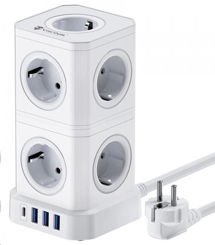 Představujeme Viking ACT94 - revoluční elektrickou zásuvku, která rozšiřuje standardní zásuvku na další 9 x AC 230V, 3 x USB-A a 1x USB-C výstupy.
