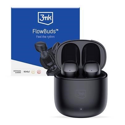 3mk bezdrátová stereo sluchátka FlowBuds, nabíjecí pouzdro, černá