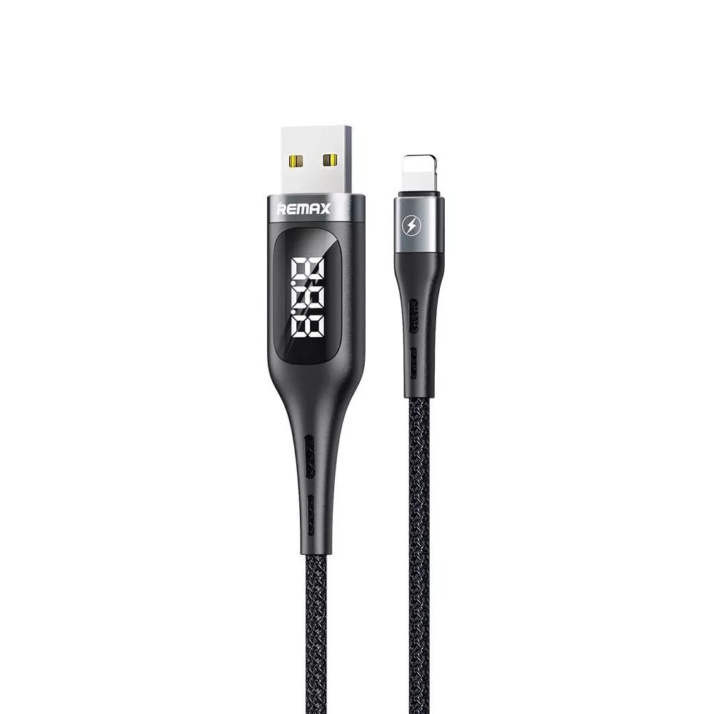 Remax kabel USB - Lightning nabíjecí kabel s displejem, měřič proudu 2,1 A 1,2 m vestavěný časovač nabíjení černý (RC-096i černý)