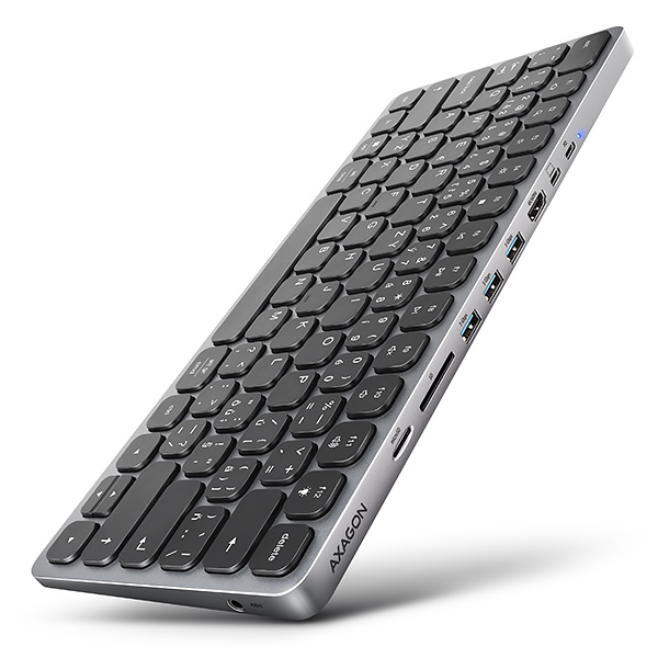 AXAGON HMC-KB-CS, USB 5Gbps hub s CZ/SK klávesnicí, HDMI 4K/60Hz, 3x USB-A, SD/mSD, audio, PD 100W, kabel USB-C 60cm